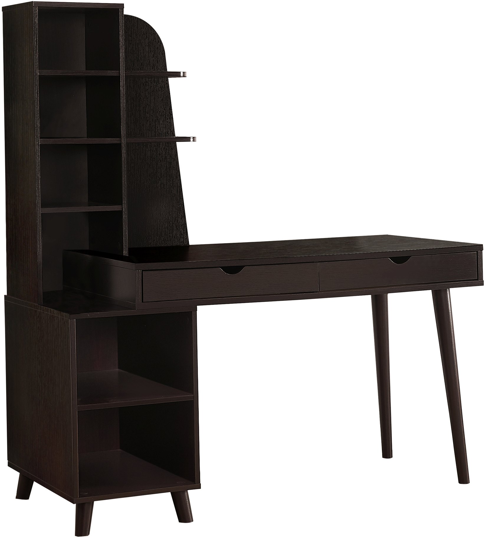 Voici une solution tout-en-un élégante et pratique pour construire votre bureau à domicile ou votre centre d'études! Ce bureau d'ordinateur moderne d'inspiration rétro avec une bibliothèque attachée sur le côté (non réversible), dispose de plusieurs options de rangement pour vos besoins de travail quotidiens. La surface de bureau rectangulaire lisse et spacieuse offre beaucoup d'espace pour votre ordinateur portable, une lampe et des fournitures de bureau ainsi que 2 grands tiroirs de rangement pour ranger le matériel d'écriture. Les 7 étagères fixes sont disponibles dans une variété de tailles comme unité de rangement facilement accessible. L'ensemble du poste de travail est soutenu par des pieds angulaires et fini dans un riche expresso brun foncé. L'assemblage est requis.