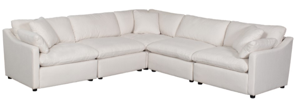 Les coussins de dossier amples et les trois coussins coordonnés contribuent à votre confort ultime. Les accoudoirs inclinés créent un contraste subtil avec les lignes droites du profil du sectionnel. Un ottoman coordonné est également disponible. Également disponible en tissu gris ou bleu.
