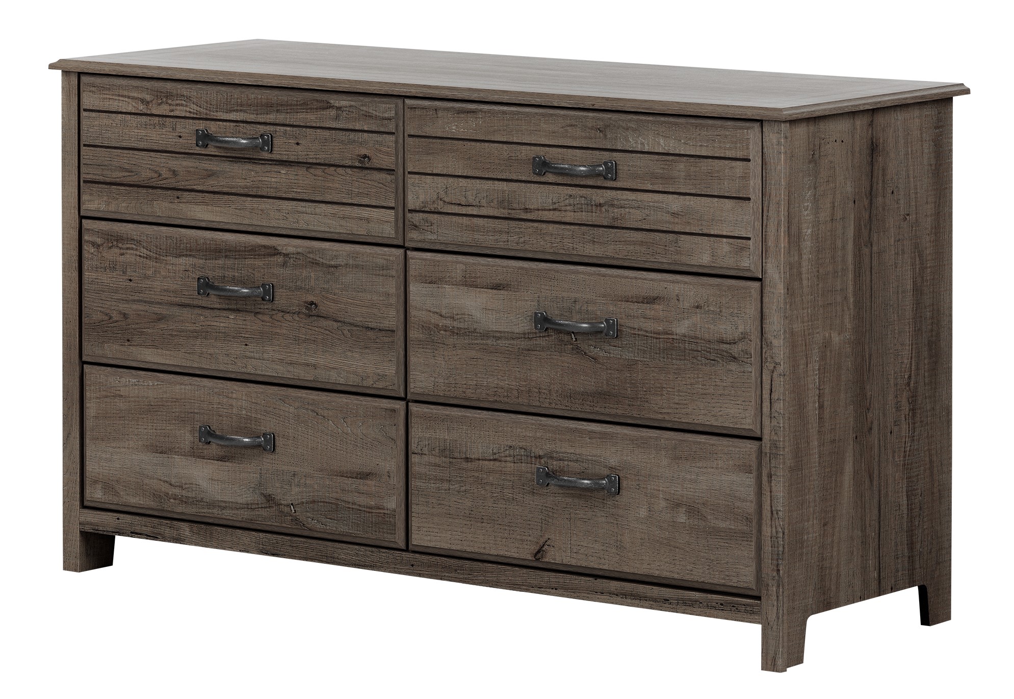Cette commode en finition couleur chêne d'automne comporte des poignées en métal et 6 tiroirs de rangement.En savoir plus