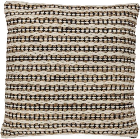 Motif de rayures tissé à la main en noir, blanc et brun. Revers uni de couleur ivoire. Face en laine/jute et envers en coton. Fermeture éclair. Rembourrage en fibre. Nettoyage par taches uniquement.En savoir plus