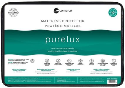 Protège-matelas écologique COMERCO, 100% imperméable, confort douillet, respirant, garantie de 10 ans contre les taches, tant sur le nouveau matelas que sur le protège-matelas. Comprend 2 protège-oreillers pour votre confort et votre protection.En savoir plus