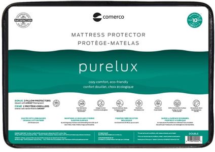 Protège-matelas écologique COMERCO, 100% imperméable, confort douillet, respirant, garantie de 10 ans contre les taches, tant sur le nouveau matelas que sur le protège-matelas. Comprend 2 protège-oreillers pour votre confort et votre protection.En savoir plus