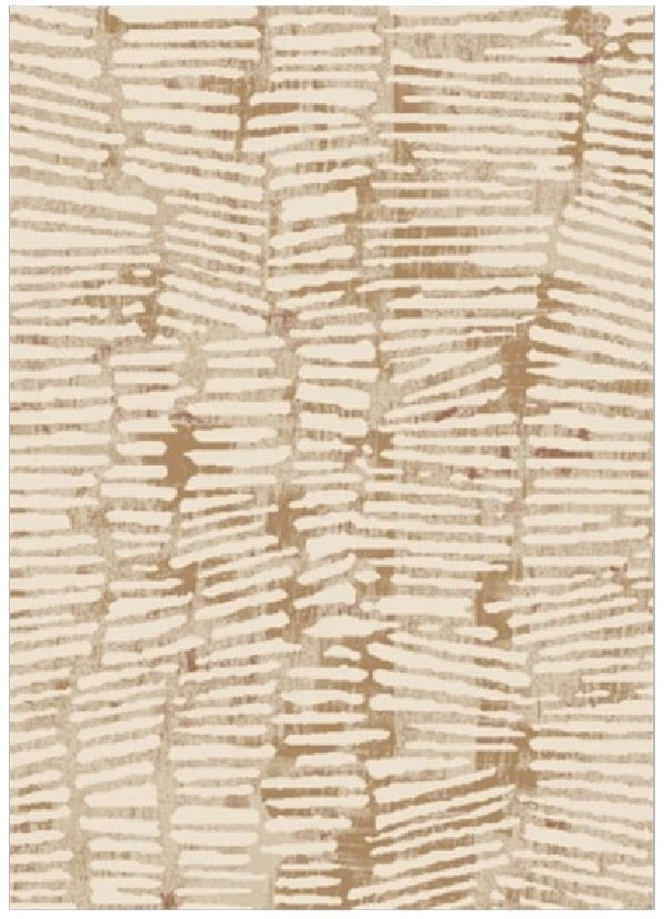 Tissé à la machine, motif abstrait dans les tons crème, beige et rouille