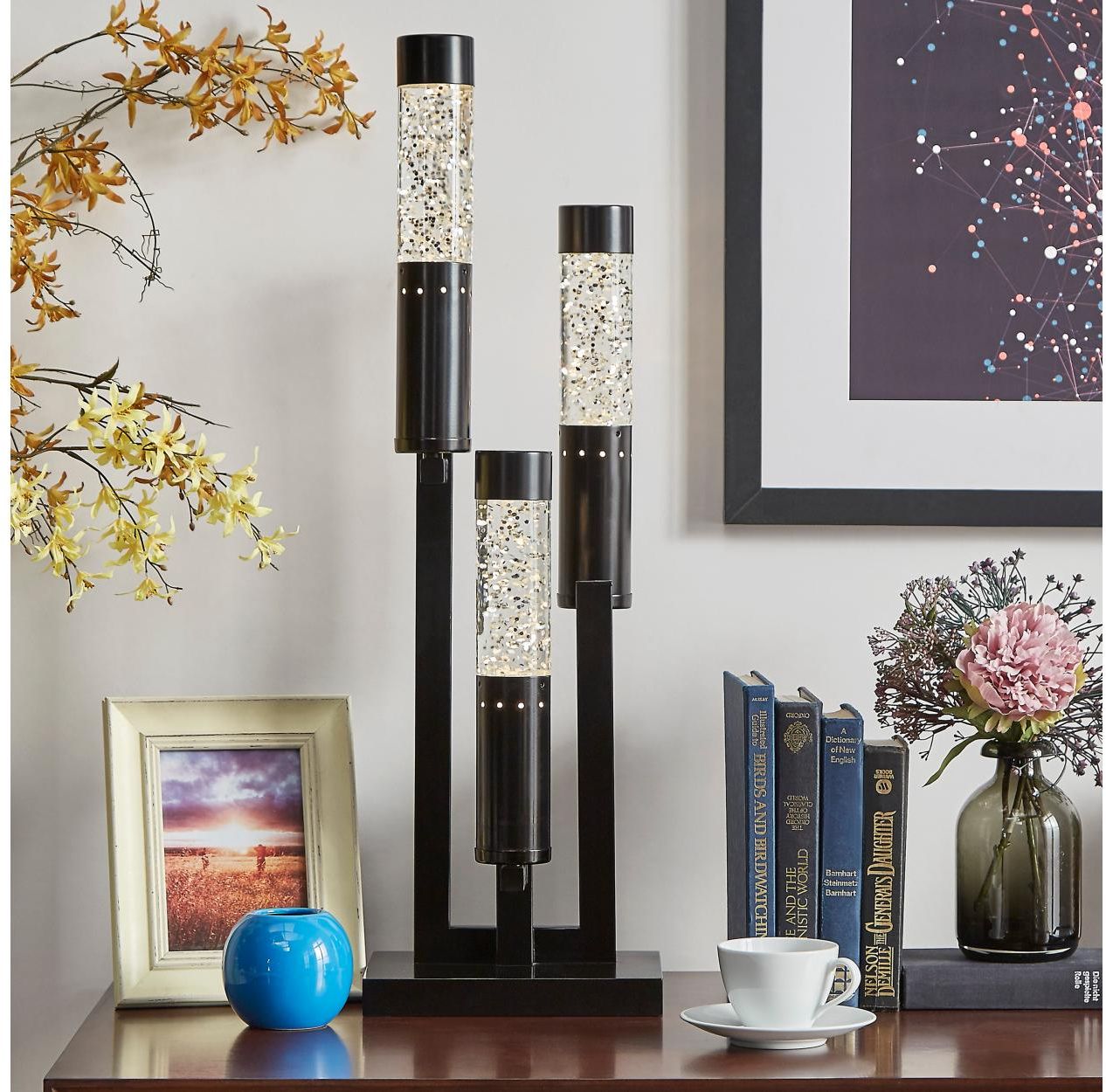 Cet éclairage d'appoint peut changer l'ambiance de n'importe quelle pièce. Son design ultra moderne met en valeur une lumière d'ambiance décorative étincelante, avec de minuscules gouttelettes d'eau ondulantes qui simulent le mouvement apaisant de l'eau qui danse. Le support magnifiquement fabriqué est composé de métal et de verre de haute qualité, finition nickel satiné, et d'un élégant abat-jour rectangulaire sur une base noire. Cette lampe est idéale pour compléter votre table de chevet, votre table d'appoint ou votre table de canapé. Elle offre une solution d'éclairage flexible : une lampe de table avec une lumière principale qui convient à la lecture, parfaite comme veilleuse, et pour créer l'ambiance dans n'importe quelle pièce.En savoir plus