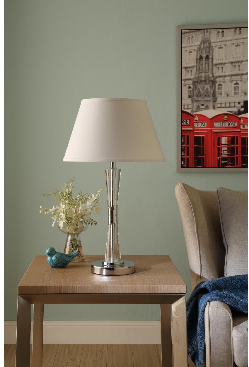 De minuscules bulles s'inscrivent dans le temps, reflétant la lueur de la collection Transect. La finition en métal poli offre un contraste et un soutien à la lampe moderne en acrylique en forme de sablier. Un abat-jour conique blanc surmonte la lampe et apporte un accent neutre à votre espace contemporain.En savoir plus