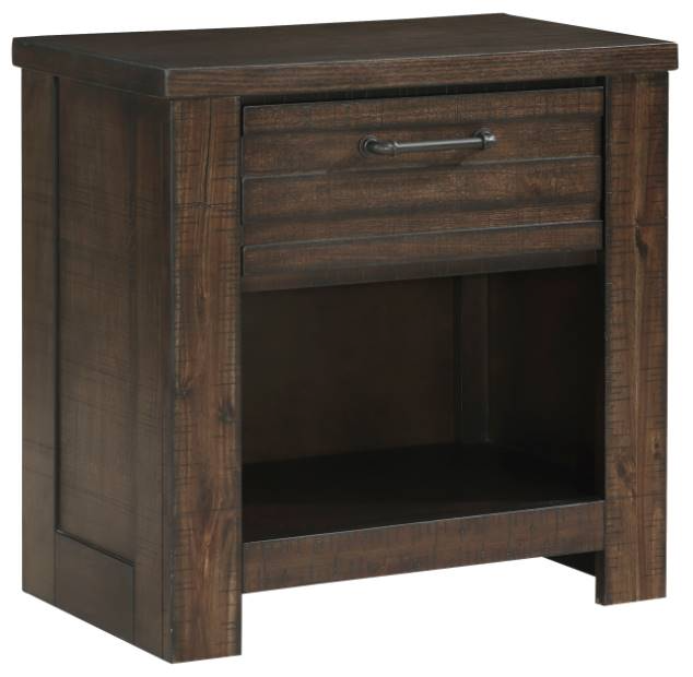 Le style rustique combiné à des touches de praticité industrielle crée l'aspect direct de la collection Longview, ce qui en fait un ajout parfait à votre chambre à coucher. Le placage de bouleau est recouvert d'un fini brun foncé qui met en valeur le grain du bois. Le cadre en planches confère à la table de nuit une esthétique rustique, tandis que la quincaillerie en métal apporte une touche industrielle.En savoir plus