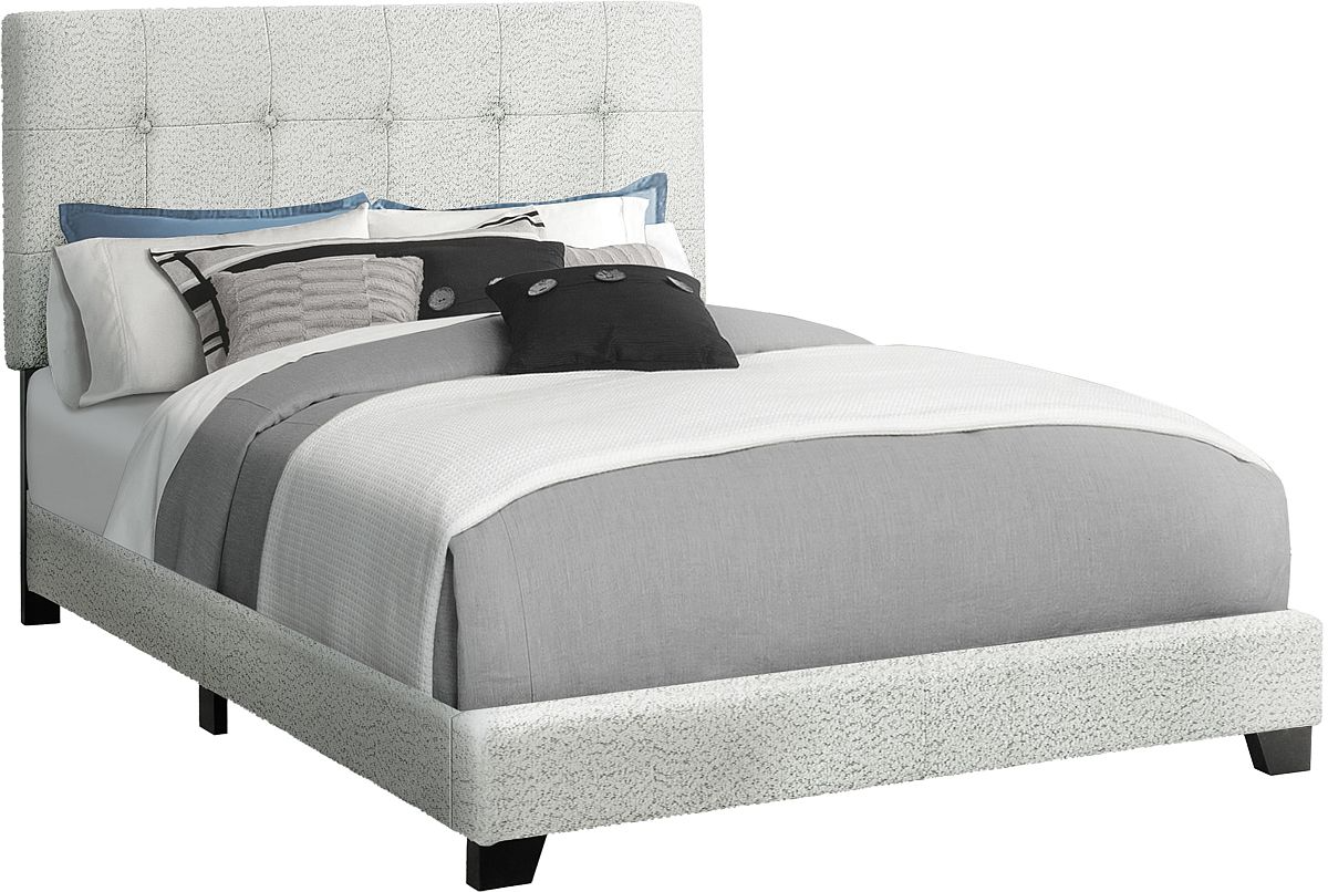 Créez un sanctuaire au style élégant dans votre chambre avec ce lit double chic et tendance, recouvert d'un tissu bouclé gris clair et de pieds blocs noirs en plastique. Ce lit au style transitionnel est conçu avec une tête de lit classique, rembourrée et capitonnée de boutons, où vous pourrez vous adosser pour un soutien confortable.En savoir plus