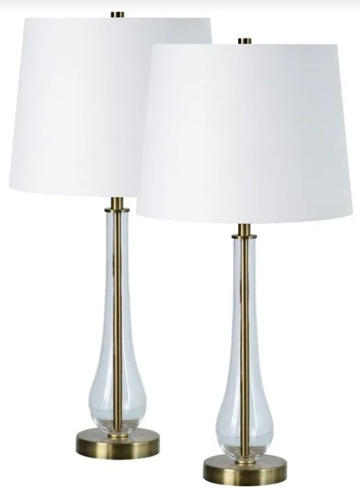 This table lamp set offers a modernized twist on traditional design. Featuring glass, antique brass-plated iron, and off-white cotton shades, it embodies romantic elegance for classic interiors. Ideal for bedrooms, offices, entryways, or living rooms, this versatile set adds sophistication and charm to any space.En savoir plus