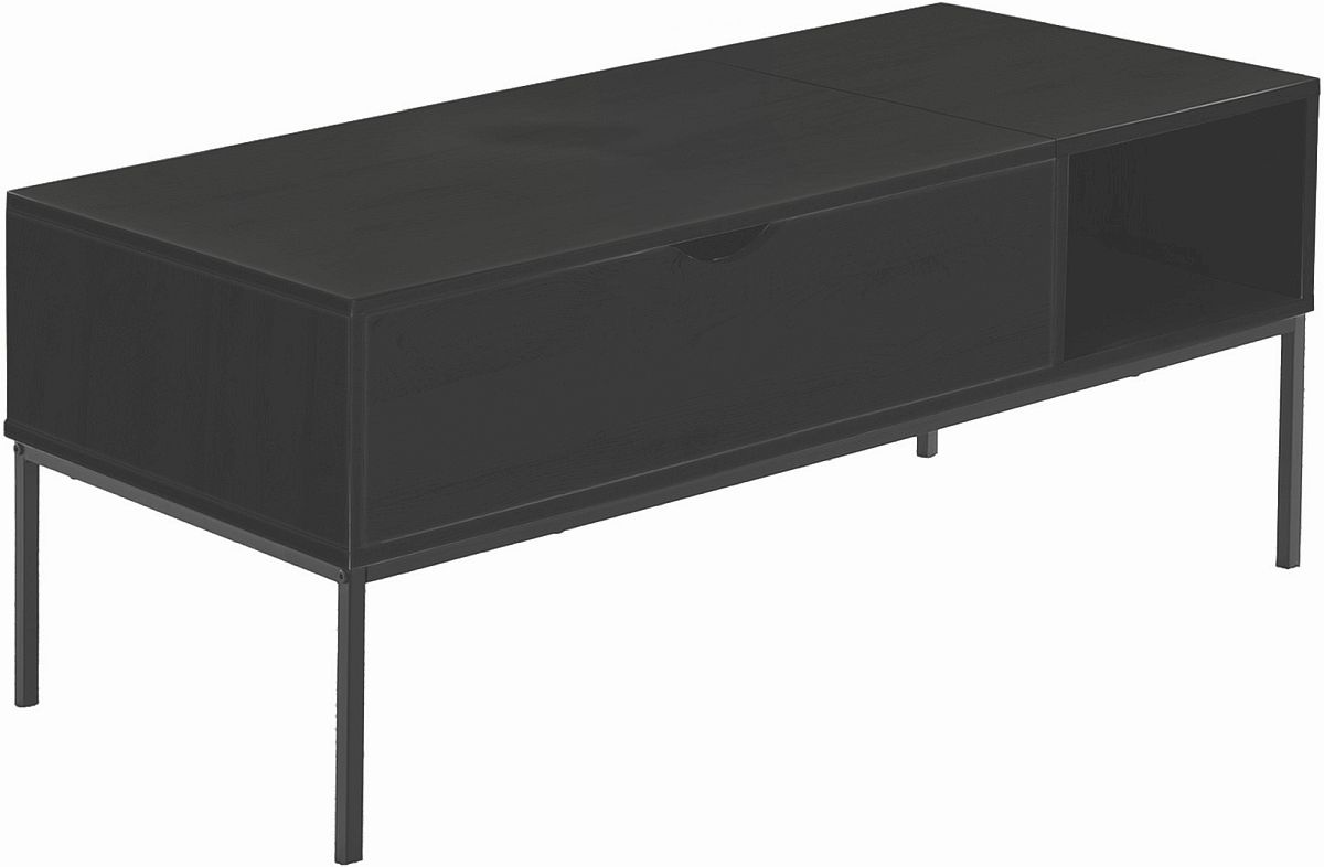 Cette table basse au style contemporain sera la pièce maîtresse de votre salon. Avec son cadre en métal noir à la fois élégant et robuste, et son plateau rectangulaire de 42 po de long au fini noir moderne en stratifié, elle allie parfaitement style et fonctionnalité.En savoir plus