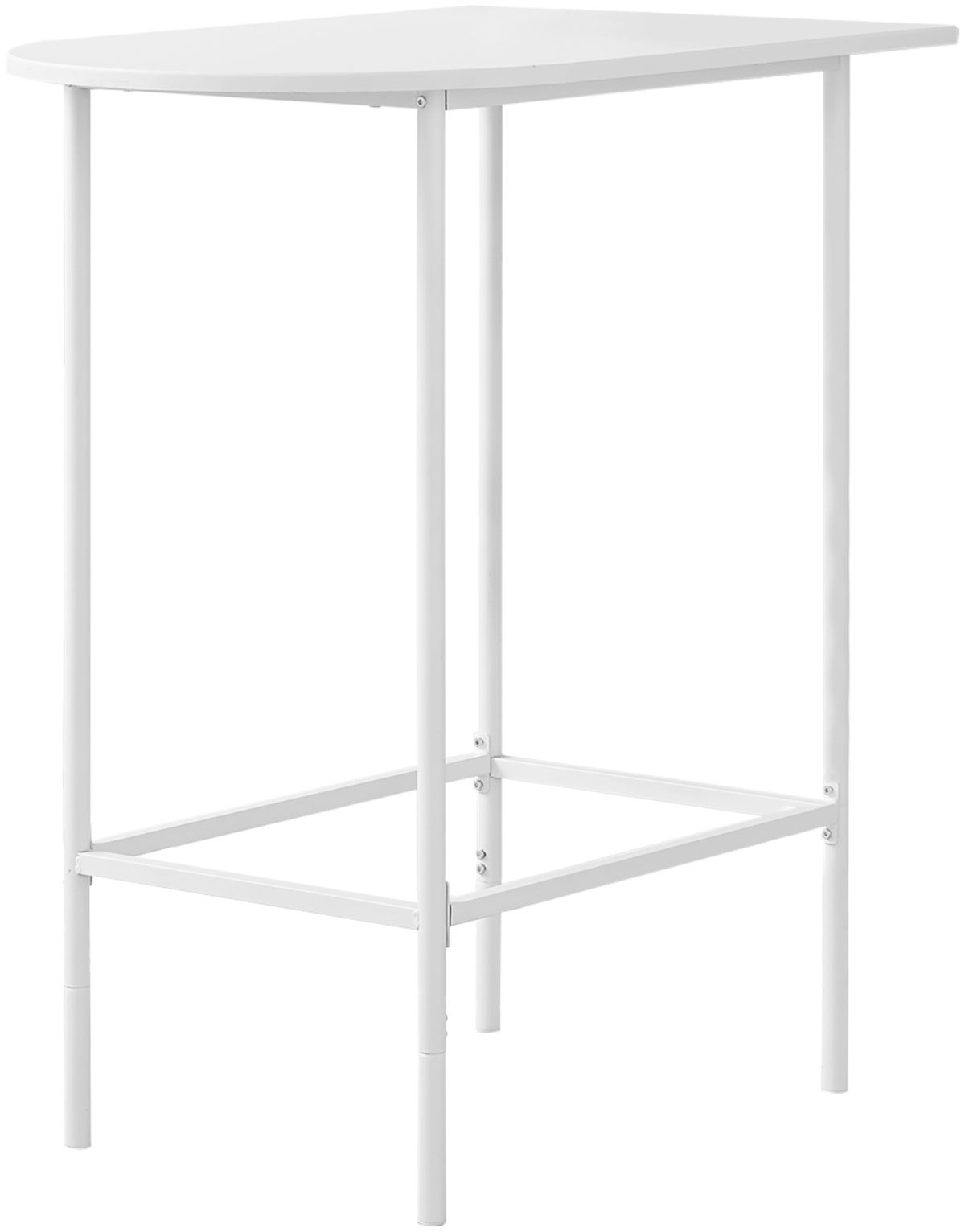 Embellissez votre salle à manger avec cette table de bar élégante qui ne passera pas inaperçue chez vous. Rehaussée d'un design contemporain en demi-lune, la table de bistro est équipée des pieds robustes en métal blanc et d'un tablier lisse fini blanc. À la hauteur parfaite, la table est idéale pour vos cocktails, collations et même des objets décoratifs. Cette table se place bien contre un mur pour économiser de l'espace, ce qui en fait la table une option polyvalente dans les petites maisons, appartements ou condos. Combinez-la avec des tabourets assortis (non inclus) pour compléter votre mini bistro.En savoir plus