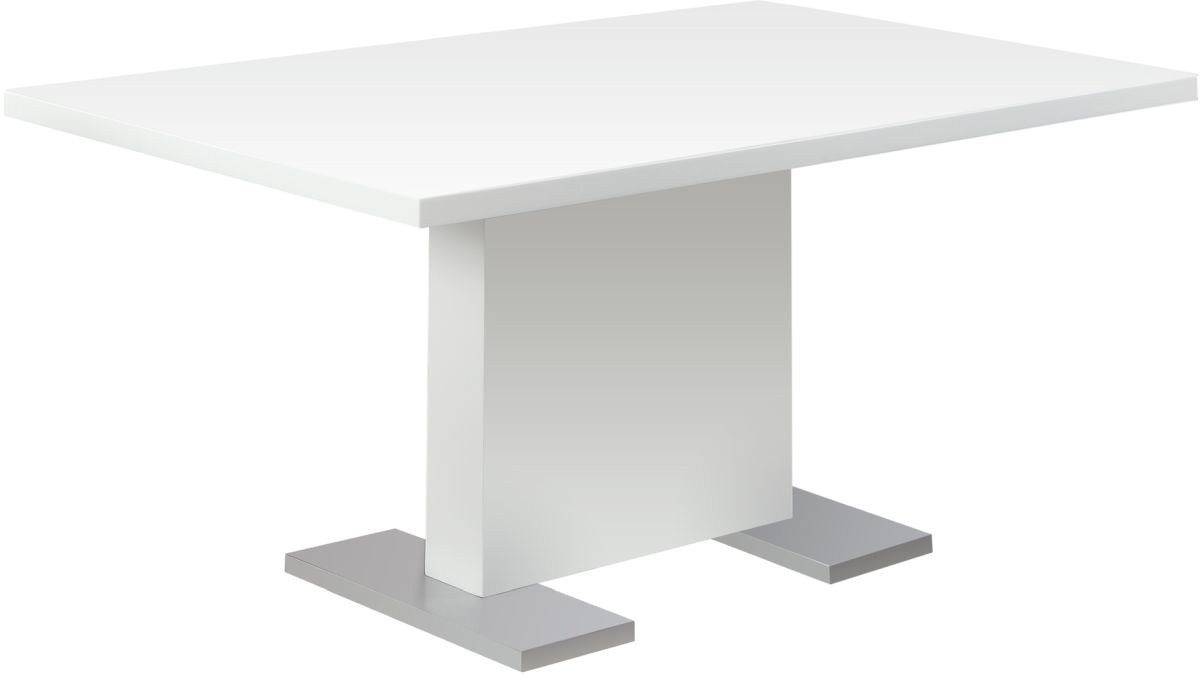 Créez un style branché et contemporain avec cette table à dîner au fini blanc lustré. Cette piece a des pattes lisses en acier inoxidable et une généreuse surface qui saura accomoder des repas intimes ou de grandes tablées. Agencez avec vos chaises favorites et créer une ambiance unique et stylée.En savoir plus