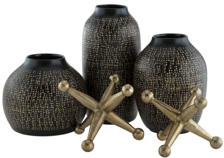 Ensemble de 5 accessoires, 3 vases, 2 sculptures
