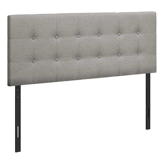 Tête de lit bouton touffeté et rembourrée en tissu d'aspect lin gris