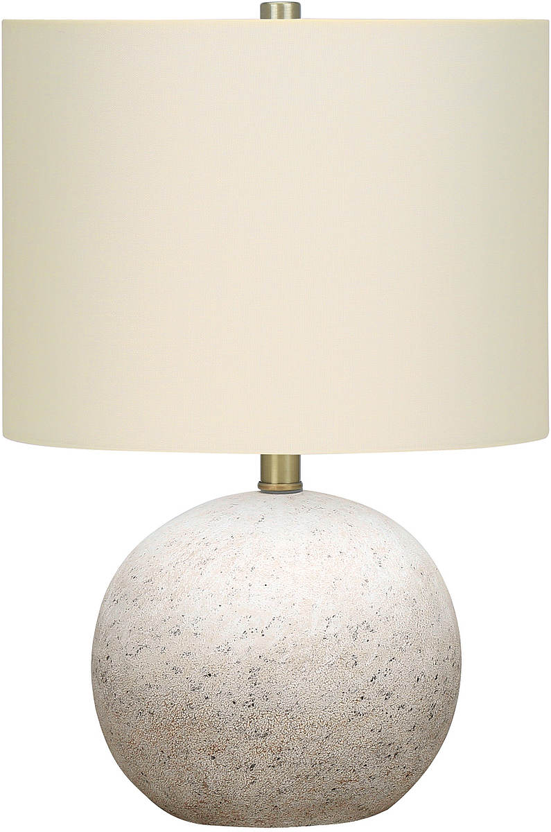 Illuminez votre bureau, votre salon ou votre chambre avec cette lampe de table chic en forme de sphère de 16 po (40,64 cm) de hauteur avec une base en béton gris dans une finition texturée et surmontée d'un abat-jour cylindrique en lin ivoire raffiné et d'un fleuron doré pour un attrait contemporain accrocheur