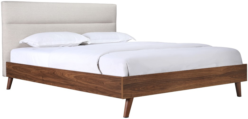 Le lin doucement texturé de la tête de lit met en valeur le grain distinct de la finition en faux noyer du cadre de lit. Les pieds angulaires exposés soutiennent une plate-forme à profil bas qui vous évite d'utiliser un sommier à ressorts ou une fondation. Élégante dans sa simplicité, la gamme de teintes et de textures neutres du Radcliffe est à sa place dans toute chambre à coucher contemporaine.