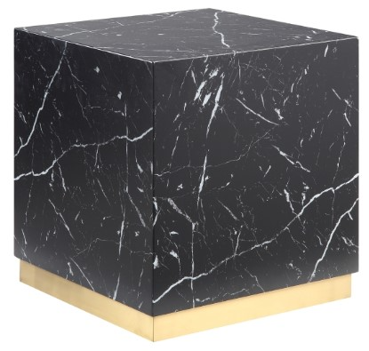 Cette grande table basse carrée accroche le regard grâce à son design unique en forme de cube solide et à sa finition exquise en faux marbre. Le noir frappant est traversé de veines blanches, accentuées par le contraste de la finition or brossé de la base en métal pour une touche supplémentaire de glamour.Read More