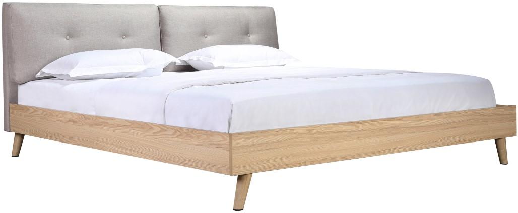 Les coussins de la tête de lit sont recouverts de velcro et peuvent être retirés et ajustés pour s'adapter parfaitement à la hauteur de votre matelas, sans parler de la conception pratique de la plate-forme, qui vous permet de ne pas avoir besoin d'un sommier. Le tissu beige neutre de type lin semble frais et accueillant par rapport au ton naturel de la finition en faux bois du pied de lit, complétant ainsi l'aspect de ce design minimaliste mais charmant. Pourquoi continuer à rêver quand vous pouvez vous réveiller chaque jour dans le Jumana ?