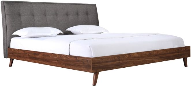 Conçu pour votre chambre à coucher contemporaine, le lit Todros très grand a été pensé avec une grande qualité. La tête de lit rembourrée en lin gris neutre contraste avec la finition chaleureuse en faux noyer du pied de lit.Read More