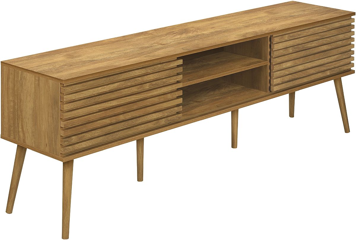 Construit avec des pieds en bois massif de conception durable, ce meuble multimédia offre à la fois des étagères de rangement ouvertes et des options de rangement fermées pour garder votre espace organisé et sans encombrement. Les portes coulissantes avec panneaux sur les armoires de rangement ajoutent un style rétro, tandis que les trous de gestion des câbles derrière les étagères fixes permettent de mettre en valeur les composants audiovisuels. Avec un style à la mode et un dessus facile à nettoyer, cette console multimédia sera un ajout pratique à votre maison. Facile à assembler avec la quincaillerie incluse, vous pouvez améliorer votre salon ou votre chambre à coucher avec ce centre de divertissement contemporain. De plus, avec une garantie limitée de 5 ans, vous pouvez faire confiance à la qualité et à la longévité de cette pièce solidement construite.