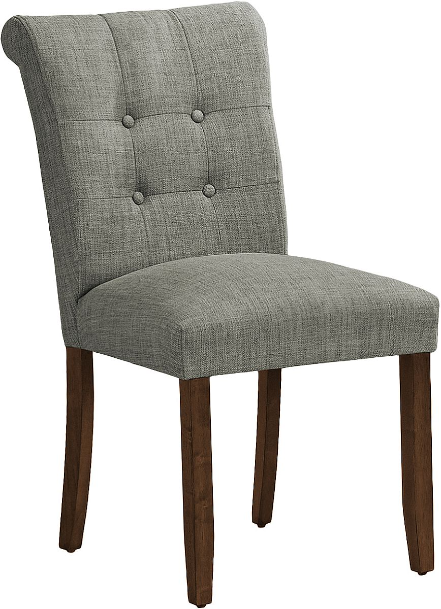 Ajoutez du confort et du style à vos repas de famille décontractés avec cet ensemble de 2 chaises de salle à manger rembourrées en tissu gris d'aspect lin. D'une hauteur de 38 pouces, ces chaises d'appoint offrent une construction solide grâce à leurs pieds en bois de noyer brun et à l'épais rembourrage en mousse de l'assise et du dossier incurvé et touffeté, apportant ainsi un style tendance à votre salle à manger ou à votre cuisine.Read More