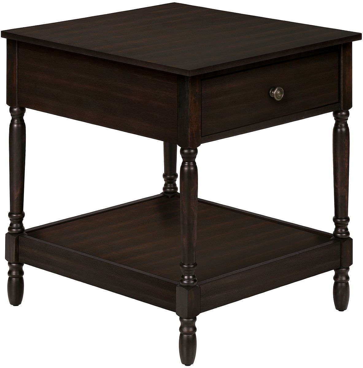 Cette table d'appoint de forme carrée de 25 pouces de haut, au design traditionnel et à la finition en placage brun noyer foncé, est parfaite pour servir comme table d'appoint ou d'appoint dans votre salon ou comme table de nuit dans votre chambre à coucher